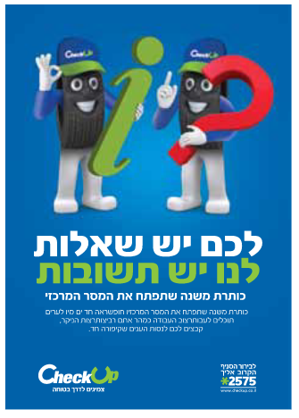 Israel’s tire industry is considered a highly competitive industry, with a low entry barrier, encompassing large importers alongside thousands of small tire repair shops. The regulation is loose and the industry’s image is not always favorable (to say the least). Going up against this challenging reality, we were approached by Check Up, a new chain of tire service centers, and asked to brand the company as an established, professional and reliable chain that provides its customers with a solution that offers exceptional personal service and additional benefits. The chain aspired to create a new industry standard and raise the level of awareness regarding the importance of tire maintenance, safety and environmental protection.