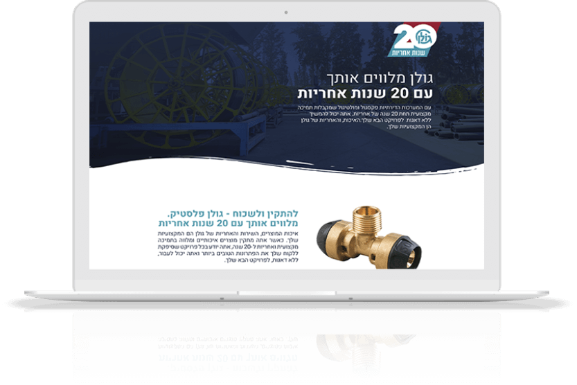Golan Plastic, a global leader in the development, production and marketing of water supply systems, aspired to increase brand awareness and positioning by granting a 20-year warranty, double the industry’s standard. Golan’s target audience is plumbing contractors and professionals in the field of water systems. The exceptionally long warranty period originated to address the pain point among professionals who have had to return, often at their expense, to fix recurring problems within the piping.